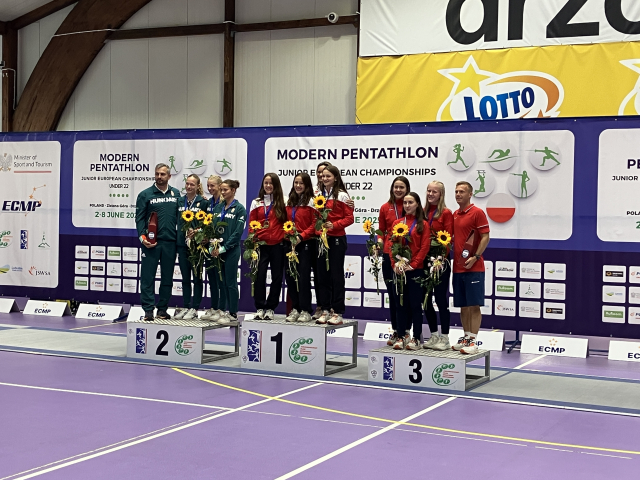 Česká reprezentace slaví další cenné kovy z mistrovství Evropy juniorů v polském Drzonkowě, tentokrát v týmových soutěžích. Dopoledne se o bronz postaraly Alexandra Fernandes, Kateřina Váňová a Daniela Veselá. Odpoledne úspěšné tažení završili junioři Matěj Kornel, Matyáš Štegmann a Dan Vorlíček, kteří vybojovali stříbrné medaile.
