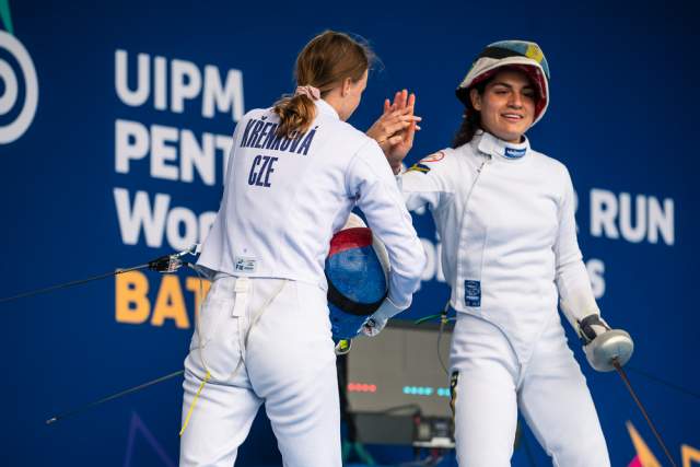 Karolíně Křenkové ani Lucii Hlaváčkové nevyšel šerm. Zejména pro Karolínu bylo selhání v její nejsilnější disciplíně rozhodující. „Mrzí mě, že se mi to nepovedlo stejně jako v kvalifikaci. Letos nedokážu dát dva dobré šermy po sobě. Teď se mi to bohužel nepovedlo v tom rozhodujícím. Tím, že nepatřím mezi nejsilnější běžce, tak opravdu potřebuji našermovat. Nikdy nechci vzdávat závod dopředu, protože se může stát cokoliv a ani dneska jsem to nedělala. Jenom se do toho závodu nastupuje trošku hůř, když vím, že se mi moje silná disciplína nepovedla,“ souhlasila Karolína Křenková, která se dle svých slov trápila i v plavání. Alespoň ze střelby mohla mít dobrý pocit. „Střelecky se mi teď povedly asi čtyři závody po sobě, za to jsem ráda. I na běhu to nakonec bylo vlastně docela dobré,“ řekla Karolína, která v semifinálové skupině s Veronikou Novotnou doběhla šestnáctá.