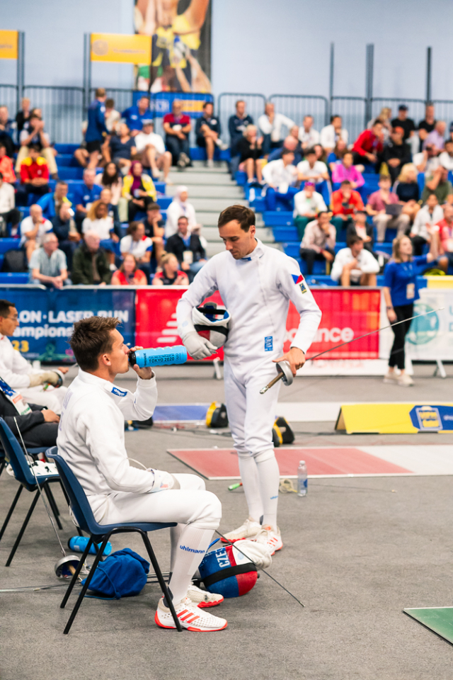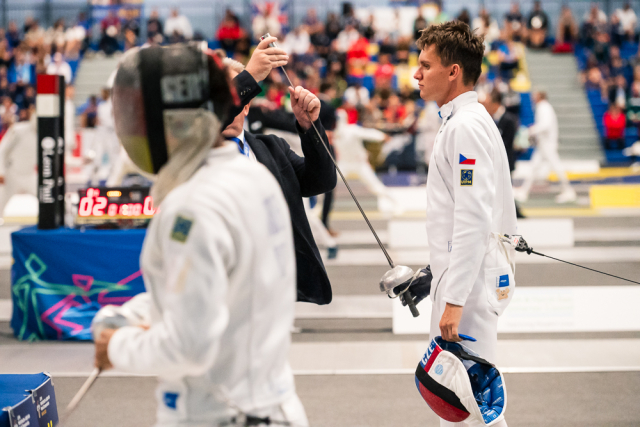 V sobotu čeká semifinále muže. V dnešní základní šermířské části získal Jan Kuf 215 bodů, Martin Vlach 200 a Marek Grycz 180 bodů.