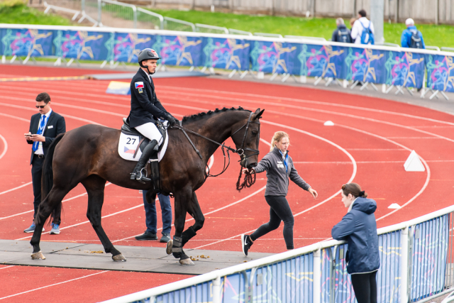 Martin vstupoval do finále s průměrnými šermířskými body, se kterými však zejména díky mistrovské závěrečné disciplíně může stále pomýšlet vysoko. Tentokrát se mu však nepovedla jízda na koni, v níž jindy patří mezi absolutní špičku. Čtyři shozy a čtyři trestné body za překročení časového limitu přidaly ke ztrátě českého pětibojaře dalších 32 vteřin. „Na rozdíl od včerejšího dne se mi dnes v těch disciplínách tolik nedařilo. Zvlášť v jezdecké části jsem dělal chyby a kůň mě trestal. Nikde mě tam nepodržel,“ řekl po závodě Martin Vlach, který se na parkuru vedle specifických vlastností britských koní potýkal i s neobvyklými vzdálenostmi mezi skoky. „Měli jsme to nějak napočítané, ale zrovna já měl koně, který byl dost velký a špatně se tam vlastně do těch distancí vešel. Takže jsem ho bral trochu zpátky a to zase nemají britští koně moc rádi. Z toho možná pramenily ty chyby. Nemyslím, že byly hrubé, ale dnes jsem se zkrátka nesešel s jezdeckou formou,“ litoval. Přesto si reprezentační trenér Jakub Kučera nemyslí, že by si měl jeho svěřenec kvůli jízdě něco vyčítat. „Martin má na jízdě dlouhodobě jedny z nejlepších průměrů na světě. Tady v Británii je to citlivé, jezdí se trošku jinak. O tom koni jsme nějaké informace měli a myslím, že jsme ho možná i špatně odhadli. Takže pak i ta doporučení, které Martin měl a snažil se je plnit, nakonec nefungovala tak, jak by měla.“ Po jízdě na koni narostla ztráta Martina na čelo závodu na více než minutu. „A byl ze závodu venku. Tady je to o jednotlivých bodech. Jakmile někdo ztratí tři desítky bodů a je jedno, z jaké pozice, tak se to už kompenzovat nedá,“ konstatoval kouč Kučera.