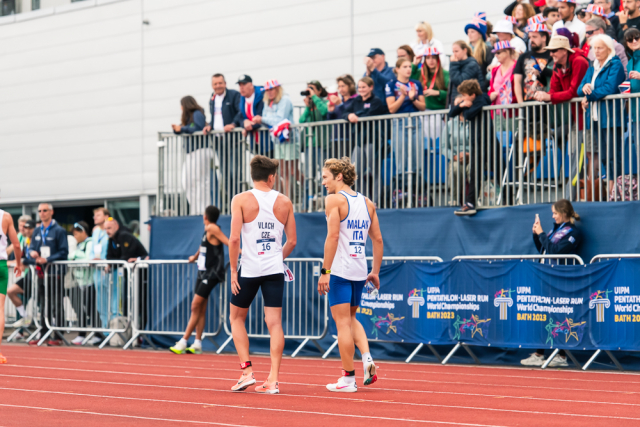 Čtrnáctou příčku obsadil na mistrovství světa v britském Bathu Martin Vlach. Už výchozí pozice po základním šermu nebyla růžová, čtyři chyby v jízdě na koni pak ztrátu českého závodníka zvýšily nad neřešitelnou mez. Mistrem světa se stal domácí Joseph Choong.