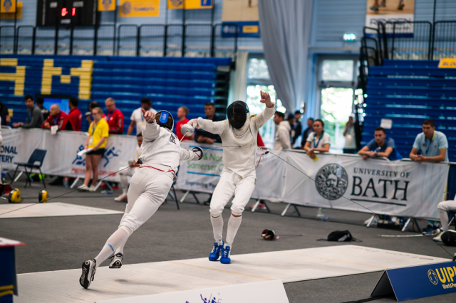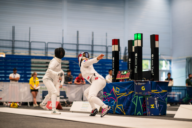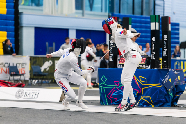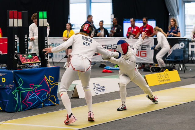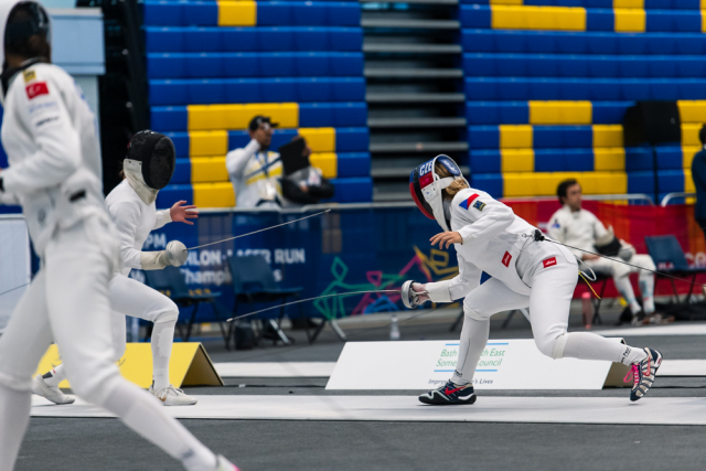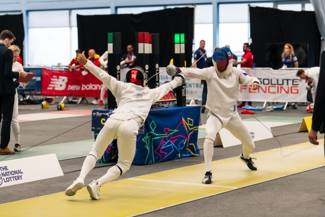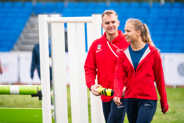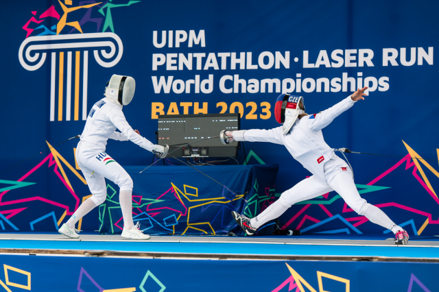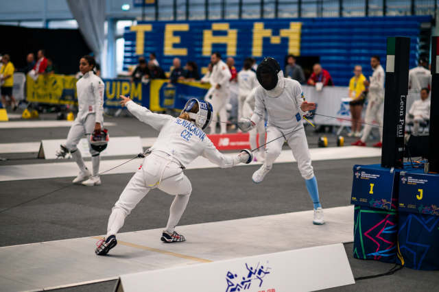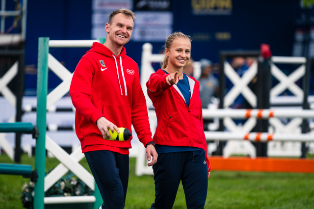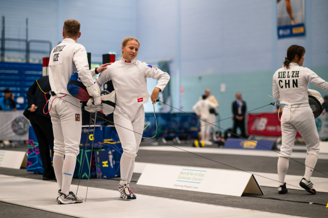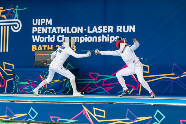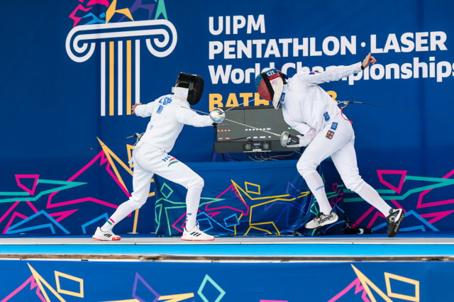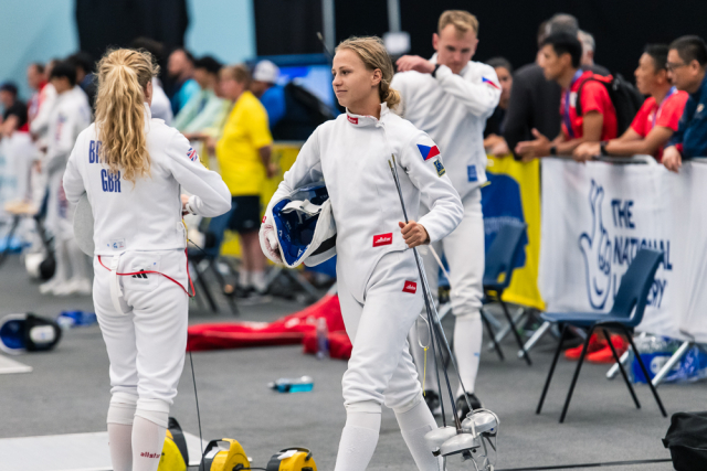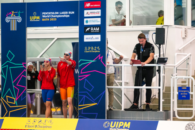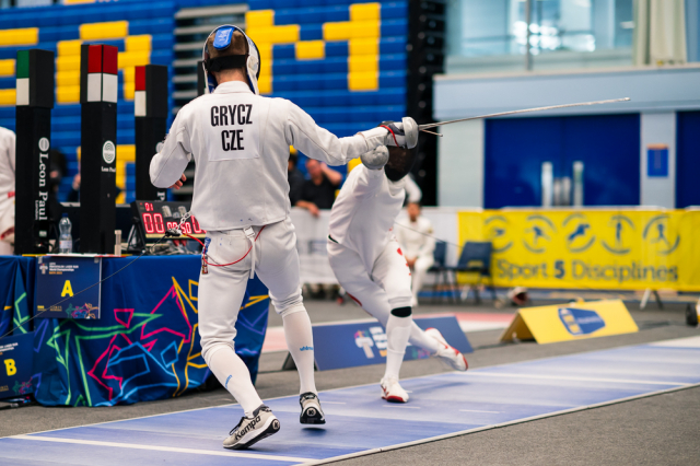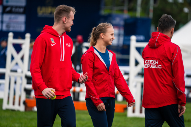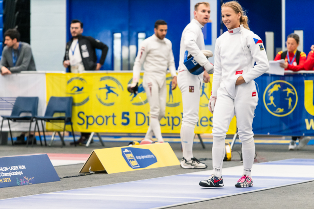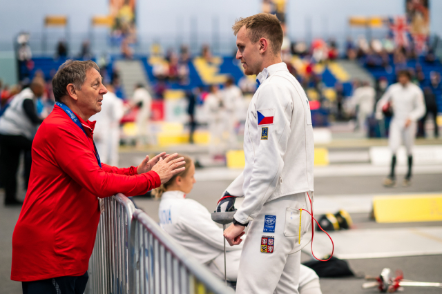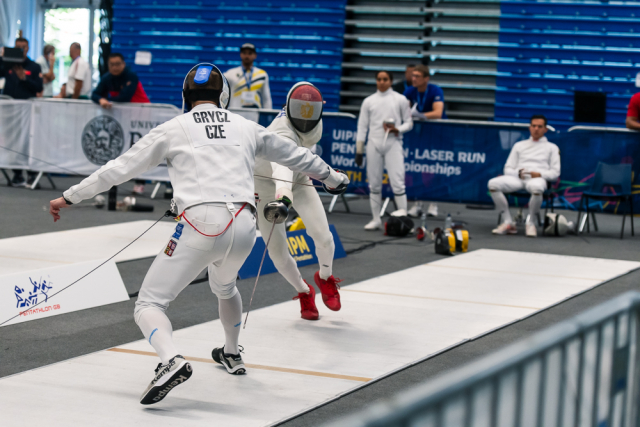 Už v úvodním šermu si oba spravili chuť z nepovedených individuálních závodů, když s výrazně aktivní bilancí 23/17 získali cenných 230 bodů. „Snažili jsme se být v pohodě a moc na sebe nevytvářet zbytečně tlak. Myslím, že jsme to dneska zvládli docela nad věcí,“ pochvaloval si Marek.„Já šerm začala strašně, tak jsem ráda, že jsem se pak z toho dokázala nějak zvednout,“ oddychla si jeho týmová parťačka. A spokojený s úvodní disciplínou byl i reprezentační trenér Jakub Kučera. „Bylo dobře, že v momentě, kdy se jednomu přestalo dařit, začalo se dařit druhému, takže si dokázali pomoct. Neměli tam tak žádnou dlouhou šňůru, kde by prohrávali, protože vždycky alespoň jeden z týmu byl úspěšný. Skvělý výsledek i uspokojivý výkon.“