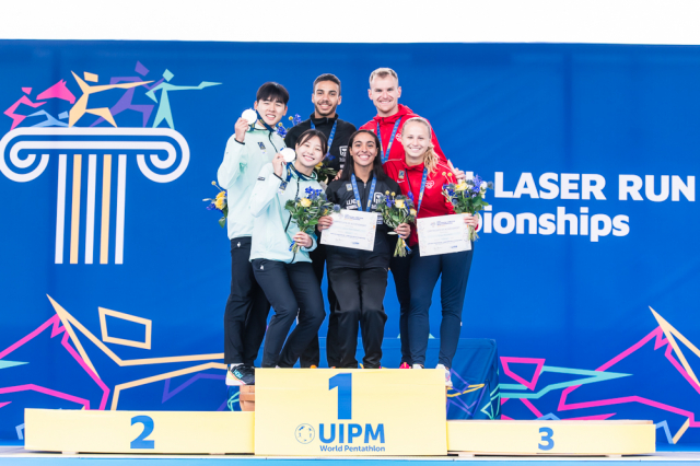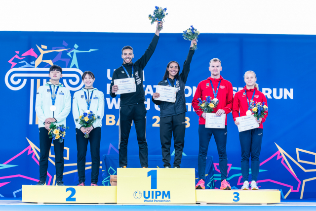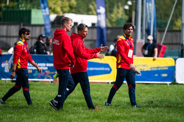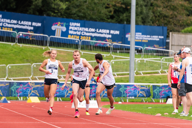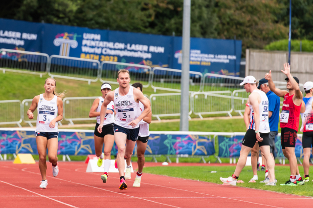 Do závěrečného běhu se střelbou startoval český mix s odstupem téměř minuty od vedoucích Egypťanů, kteří byli v pondělní soutěži suverénní od samého začátku. Průběžně druzí Korejci drželi před českým týmem náskok téměř čtyřiceti vteřin. Naopak za Čechy to bylo nabité. Pouhé tři vteřiny zpět figurovali Maďaři. Sedm vteřin za Čechy byly také štafety Británie, USA a Turecka. „Věděli jsme, v jaké pozici jsme, že by to tam mohlo klapnout. Že za námi blízko žádné štafety, které běhají nějakou raketu na kombajnu, nejsou. Takže to bylo o tom, nepokazit střelbu, což se nám tak napůl povedlo. Nebyla to žádná paráda, ale ani jsme tam neudělali žádnou hrubici a na běhu jsme dneska byli podle mě oba dobří,“ zhodnotil závěrečnou disciplínu Marek Grycz. A Lucie Hlaváčková doplnila: „Rytmus jsme si hlídali. Šli jsme spíš na jistotu, ale úplně s jistotou to teda nebylo. Střelba mohla být lepší, ale dobře to dopadlo.“ „Jenže ono v těch emocích a pod tím tlakem, když víš, že jdeš o placku, je těžké střílet úplně čistě. To je taky trochu rozdíl, jestli si člověk závodí někde o desáté místo nebo o bednu. Myslím, že za těchto okolností střelba ok,“ kontroval Marek.