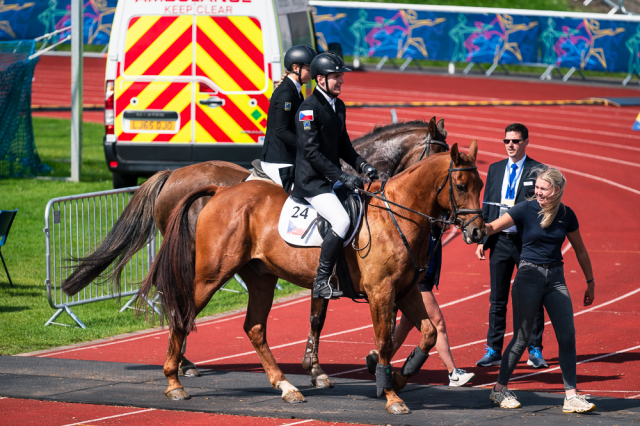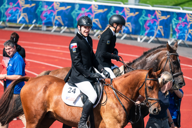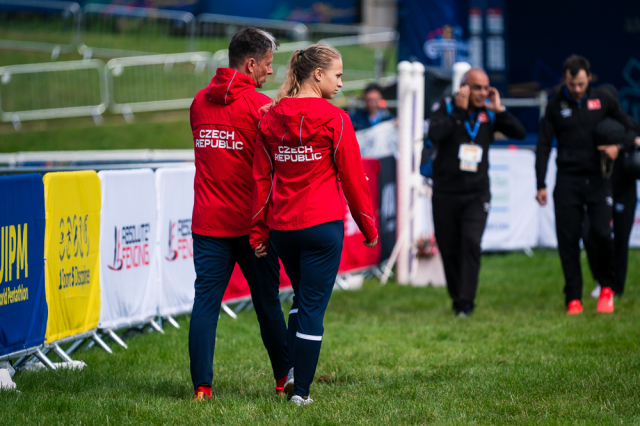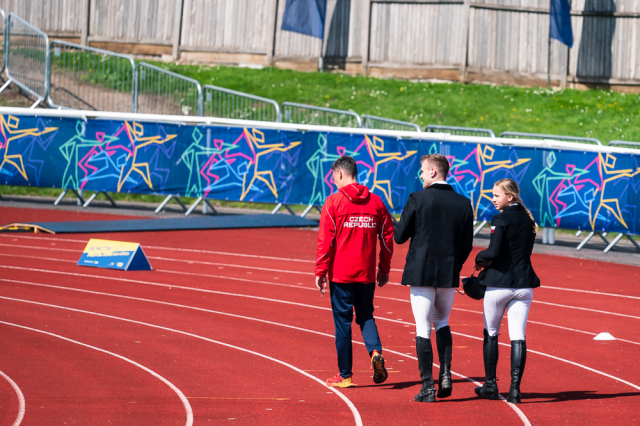 Rozhodující momenty se však odehrály na parkuru. Z 21 štafet bylo v jízdě na koni sedm eliminováno a jedna do jízdy vůbec nenastoupila. Na losu tentokrát tolik nezáleželo, do každé štafety je vždy nasazen jeden kůň z nejlepší a druhý z nejhorší skupiny předchozích soutěží. Výkonnost tak bývá vyrovnaná. Češi dostali nejúspěšnějšího koně individuálních závodů. Ale také druhého, který byl extrémně náročný. V předchozím kole s ním byli eliminováni Francouzi a Češi tak znovu losovali z rezerv. Náhradní kůň byl výkonnostně podprůměrný, s vlastním jezdcem mimořádně hodně chyboval. Marek Grycz ho ale vládl se ctí a pouhými třemi shozy. Lucie Hlaváčková byla bezchybná. „U koní jsem hrozně ráda, že se to povedlo. To mi spadl kámen ze srdce a zase jsem si tím spravila chuť,“ jásala. „Jak Lucka, tak Marek zvládli tu svoji roli úplně skvěle,“ ocenil kouč Kučera.